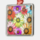 Imagem de flores coloridas de gerbera em amarelo, roxo e rosa. Um vibrante design floral de lindas flores de jardim.