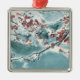 A ameixa vermelha floresce outstand na paisagem prateada da neve. Com muitas flores da ameixa, ramos espalhados através da imagem, igualmente levando a fragrância ao ar. As andorinhas voam perto, elogiando a beleza das flores e trazendo a mensagem do próximo primavera. Cores diferentes do cobrir de neve as montanhas, incluindo o azul de turquesa e o branco leitoso puro, ambos contrário à flor vermelha de incandescência.