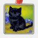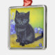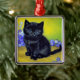 Ornamento com um gato preto no estilo de Vincent van Gogh! Este querido de olhos azuis fica adoravelmente com flores roxas contra uma parede verde e mesa amarela. Um presente maravilhoso para amantes de gatos e colecionadores de arte holandeses!