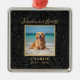 Forever in our Hearts Pet Memorial Custom Name Photo black floral memorial metal ornament with your pet’s name and dates in an elegant gold serif font.