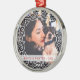 Compartilhe uma foto favorita neste ornamento chic e elegante e adicione sua legenda personalizada e/ou o ano. Design apresenta um estilo deco de arte ornamentado, borda branca ao redor da sua foto, com seu texto em vermelho festivo de feriado.