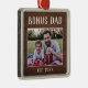 Encantador ornamento personalizado para um padrasto especial mostra uma foto favorita com "Pai de Bônus" acima em letras rústicas. Personalize com o ano em que se tornou padrasto por baixo, ou adicione uma mensagem ou nome personalizado.
