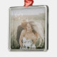 Novo ornamento moderno, com um simples design com os nomes da noiva e do noivo em um elegante roteiro manuscrito no canto superior esquerdo e a data do casamento no canto inferior direito, sobre sua foto favorita do casamento. A letra chic da mão adiciona um toque romântico. Este ornamento faz um presente de excelente para um casal recém-casado para o seu primeiro Natal casado.