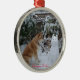 Ornamento De Metal gatinha akita sentada com um cachorro-da-neve