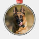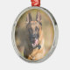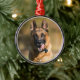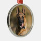 Um cachorro German shepherd revestido de vermelho corre alegremente ao ar livre.