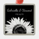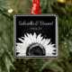 Comemore suas núpcias com o bonito Girassol Branco no Ornamento da Praça Negra. Este clássico Enfeites de natal floral personalizado apresenta um girassol preto e branco sobre fundo preto.
