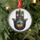 Ornamento De Metal Gold Violet Teal Hamsa w/ Turquoise Third Eye