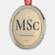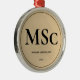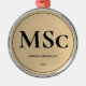Um ornamento para um formando MSc com um tom de ouro (não folha) e esquema de cor preta. Mostra o grau, o nome e o ano. Simplesmente personalize este ornamento, adicione-o ao seu carrinho, e mantenha-se fiel a esta grande conquista. Design de Natal Dourado e elegante MSc Graduação em metal | ©Melissa Patton - Designer