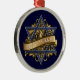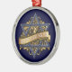 Elegante Estrela Judaica de David (Magen David) símbolo tradicional de hexagrama azul e branco contra um fundo de ouro e barroco negro e flúor com fita de ouro e desejos de cartões de natal para um Feliz Chanucá. Arte original da artista Margaret Loftin Whiting.