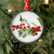Ornamento com fotografia de folhas sagradas variegadas e bagas vermelhas