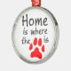 Um jogo de palavras com a citação "Casa é onde está o coração", este ornamento redondo tem as palavras "Casa é onde está a [pintura impressa]", com a pintura impressa em vermelho, representando o "coração". O presente perfeito para amantes de estimação.