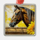 Bonito cavalo marrom e uma arte artificial de girassol amarela para um amante de cavalos.