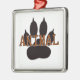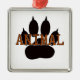 Uma pata preta e impressões de garra com texto castanho. Design original.