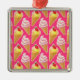 Ornamento De Metal Kawaii pink pattern with strawberry ice cream