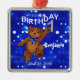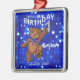 A dança pequena bonito do urso de ursinho em luzes e na terra arrendada azuis um 1 número de brilho é um ornamento da lembrança do primeiro aniversario do divertimento para esse rapaz pequeno especial em sua vida com seu nome na parte dianteira. Personalize o nome e a data no modelo fornecido. Design original pelo estúdio do design do Anura.