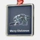 Um lobo escuro fantasma (Canis lupus) lança uma sombra luar enquanto se move através da terra. Personalizável leitura de texto, Feliz Natal" também é exibido. Você pode alterar a cor de fundo.