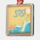 Um ornamento premium quadrado com uma imagem cartoon de uma mensagem em uma garrafa em uma praia ensolarada de areia com uma estrela do mar laranja e um dólar de areia branca. "SOS" é impresso no topo em letras grandes e azuis. Veja toda a coleção de Encaminhamentos de Naufrágio nos TOUCHES ESPECIAIS | Seção Favoritos para festas.