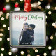Ornamento De Metal Merry Christmas Elegant Red Green Photo Overlay