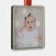 Sua foto favorita em um ornamento de metal quadrado. Carregue sua própria imagem para criar ornamentos da árvore de Natal para você mesmo ou dê como presente para a família, amigos, pais e avós! A palavra amor em um script chic é exibida sobre sua foto na frente ou exclua-a.