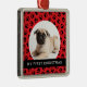 Celebre a estreia de natal do seu parente peludo com este adorável ornamento personalizado! O design festivo apresenta um padrão de pegadas, uma foto do seu cão (ou gato) de estimação e um texto moderno de "Meu Primeiro Natal". Esquema de cores vermelho, preto e branco. Dica da foto: recorte sua foto em um formato quadrado antes de carregá-la no site.