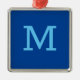 Ornamento De Metal Monograma Azul Moderno Adicionar Seu Nome Inicial