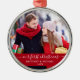 Elegante Na moda Trendy Script Nosso Primeiro Ornamento Vermelho De Foto Do Casal De Natal
