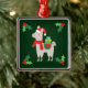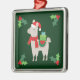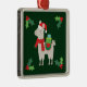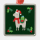 Este ornamento quadrado premium apresenta uma design de Natal com uma lama vestindo um chapéu de inverno e um cachecol que são presentes de carregando nas costas e folhas sagradas e bagas vermelhas nas esquinas.