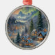 Ornamento De Metal Natal numa aldeia montanhosa, luzes polares