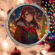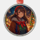Menina bonito de anime do lado de fora em um Enfeites de natal de inverno.