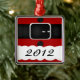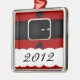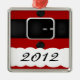 Ornament características de design um fim acima do terno vermelho famoso do Papai Noel do papai noel. As características de design enegrecem os botões brilhantes, correia brilhante do preto com a curvatura colorida prata no fundo vermelho do terno. O design igualmente caracteriza um branco, área inchado para olhar como a pele em torno da parte inferior do terno do papai noel. Dentro do branco a área é um lugar para personalizar seu ornamento com o ano, nome ou texto do seus próprios na pia batismal preta.