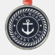 Um presente perfeito para os donos de barcos, este Enfeites de natal náutico bonitinho em azul-marinho clássico e branco mostra o ditado "velejar mais, menos se preocupar" curvo em torno de uma ilustração branca da âncora, acentuado com detalhes náuticos.
