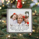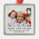 Comemore as alegrias simples dos feriados com um ornamento personalizado de metal quadrado branco e preto fotográfico. Imagem e todos os textos neste modelo são fáceis de personalizar, incluindo a citação que diz "Netos fazem a vida grandiosa." (DICA DE IMAGEM: Uma maneira fácil de centralizar uma foto exatamente como você quer é recortá-la antes de carregá-la no site do Zazzle.) O moderno design preto e branco minimalista apresenta uma elegante tipografia de scripts manuscritos e uma fotografia da sua escolha. Esta marca única acrescenta um toque na moda às decorações de casa dos novos avós no Natal. Feliz Natal Vovó e Vovô!