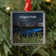 Noite nas cataratas de Niagara, com as quedas iluminadas em azul bonito. A lembrança perfeita da sua viagem!