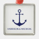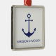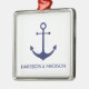 Nome da embarcação personalizada, nome da família, nomes de casal ou iniciais marinho de âncora náutica azul e branco Ornament metálico. Design elegante minimalista