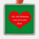 Nomes personalizados e impressos com design de coração vermelho giro em fundo verde sólido. Sinta-se à vontade para personalizar adicionando seus próprios textos, nomes ou fotos. Você pode adicionar sua foto no verso do ornamento facilmente! A cor do plano de fundo também pode ser alterada conforme você quiser.
