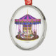 Um carrossel cor-de-rosa/feliz-volta-redondo bonito, cheio de cavalos decorados de madeira de todas as cores e designs que realmente acrescentam um toque de carnaval ou de circo.