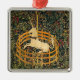 Ornamento com tapeçaria medieval O Unicórnio em cativeiro (1495-1505). A sétima tapeçaria no The Unicorn Tapestries - também conhecida como The Unicorn Rest in a Garden - mostra um unicórnio branco com um colarinho azul sentado dentro a cerca. A grama verde e lindas flores rodeiam o unicórnio. Um presente fantástico para colecionadores de arte medievais e amantes da fantasia!