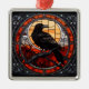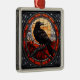 Apresentado em vidro colorido, um raspão assustador e assustador vira seu olhar no espectador.