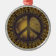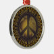 Abençoados são os pacificadores... Imaginem paz prolongada e mundial. Conseguem imaginar o que poderia ser realizado se toda a energia, recursos e força de vida destruídos pela guerra fossem utilizados na educação, nas infraestruturas, na medicina - se as despesas militares/de defesa das nações fossem desnecessárias? Incorporei o imediatamente identificável "Símbolo da Paz" da era Hippie com o globo como medalhão de bronze ou prêmio para promover a paz.