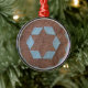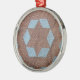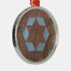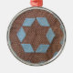 "Castelo" da Estrela Central de um bloco Quilt em padrão castelo castanho e azul. As bordas da "parede lateral 6" são visíveis.