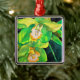 A partir de uma pintura original em aquarela de Sacha Grossel de flores de orquídea verdes e amarelas em estilo botânico pintado. Esta obra de arte original do estilo pop floral especial é vibrante e colorida. Verde limão e amarelo-limão num fundo verde-escuro texturizado.