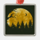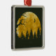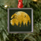 Esta design estética retrata uma cena na floresta noturna em ótimas cores douradas com uma árvore e silhueta florestal e uma lua crescente.