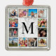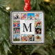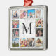 Crie seu próprio ornamento personalizado de 12 imagens de metal de colagem com suas imagens personalizadas e monograma em um fundo na moda elegante de mármore branco.