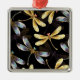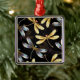 Padrão sem costura com ouro, joias, libélulas brilhantes com asas brilhantes e detalhadas sobre fundo preto. Dourada libélula.