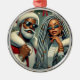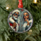 Papais noeis e companheiro estão prontos para comemorar, ambos vestindo roupas temáticas de Natal na moda. Eles estão em um pano de fundo de luzes de férias e decorações, prontos para um encontro festivo.