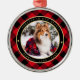 Este ornamento temático rústico memorial de animais de estimação mostra sua foto de animais de estimação no centro, bordado por uma xadrez de ouro falso e de búfalos preto e preto e preto com as palavras "Para Sempre em Nossos Corações" e o nome do seu cachorro ou gato de seu animal de estimação e anos de destaque por corações. Desenhada pela artista Susan Coffey.