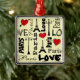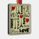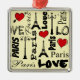 Design de texto de Paris para Dia de os namorados com formas vermelhas de coração, Torre Eiffel e decoração de lâmpadas de rua em fundo amarelo