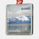 Olhando para o leste de Sandpoint, ID através do lago Pend Oreille (raio-d) em um dia de inverno; montanhas cobertas de neve na distância. O gelo formou-se na costa e se estende em parte através do lago. Blues e cinzentos são as cores predominantes. O texto personalizável lendo "IDAHO" também é exibido; e há um lugar adicional para adicionar mais texto.