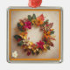 Um Natal vibrante inspirou um design com um arranjo circular de folhas coloridas, flores e sotaques ouros. O fundo floral iluminado pontilhado acrescenta um toque festivo, criando uma atmosfera festiva e radiante de férias. "A Imagem Original foi gerada pelo Meta AI. A IA gerou trabalho de arte. Licenciado sob CC BY-SA 4.0."