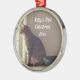 Este ornamento da árvore de Natal apresenta um gato pinto-de-mesa, listrado, marrom e preto, olhando pela janela. Personalize com sua imagem e texto.